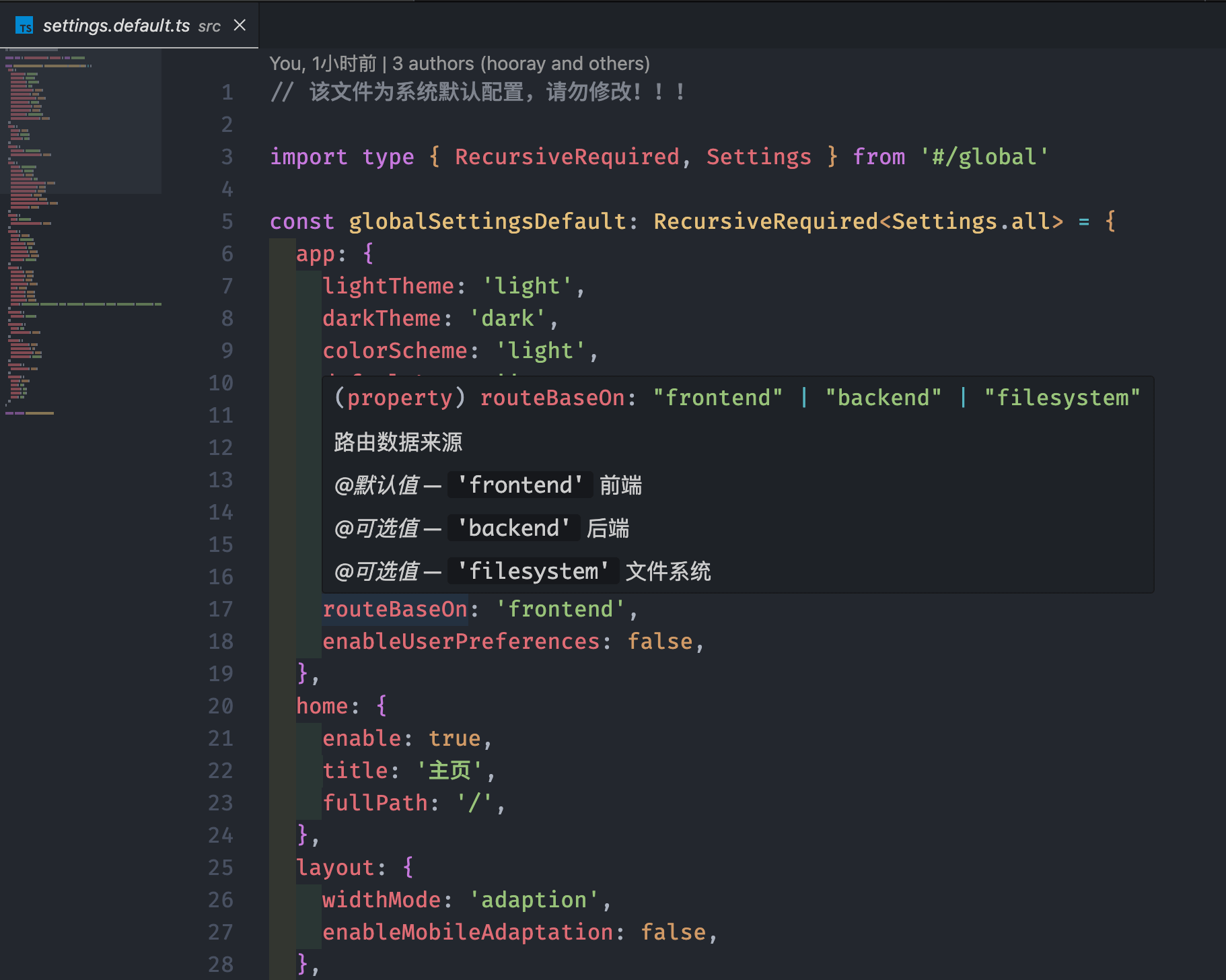 请在 /src/settings.ts 文件中进行配置,而不是在 /src/settings.default.ts 文件中,后者为框架的完整默认配置。